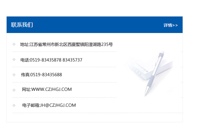 傳真:0519-83435688    郵編:213135    網址:WWW.czjhgj_com.jiachengdianqi.com    電子郵箱:JH@czjhgj_com.jiachengdianqi.com